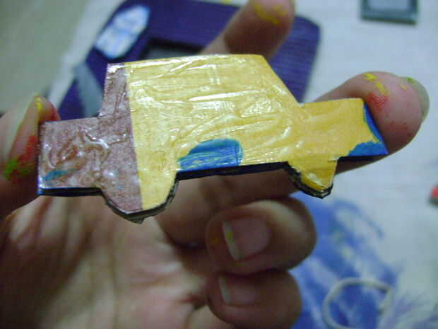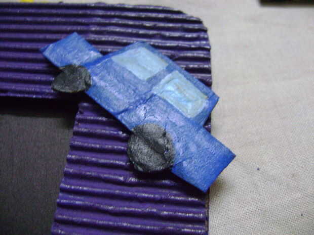 Aplicar el pegamento en la parte posterior de las piezas y pegar en el marco.