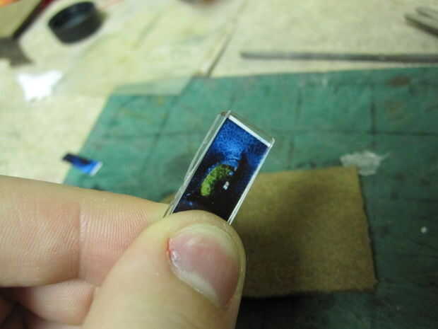que utiliza un chorro de tinta impresa brillante de la foto para esto. Sólo cortar y recortar la foto hasta que tras el cristal con la nada empujando hacia fuera. Sandwich la foto entre las dos ventanas de cristal limpios.