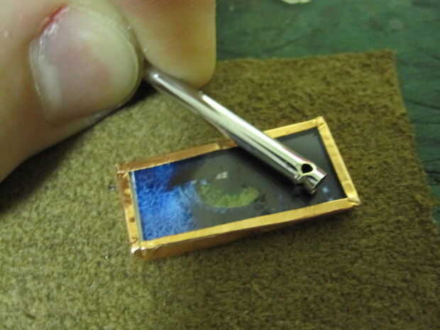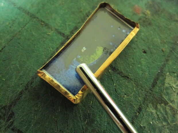 Con algo liso, doble suavemente hacia abajo de la cinta para sellar el sándwich. Los palillos chinos trabajan mucho para alisar el papel, pero utilizan una antena de radio (ya tiene forma más sentido).
