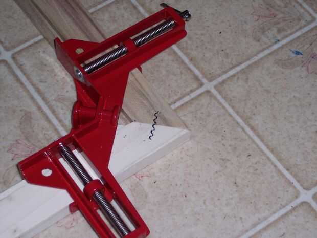 Salir de la abrazadera de la esquina y sujete una pieza de longitud y una anchura juntos.