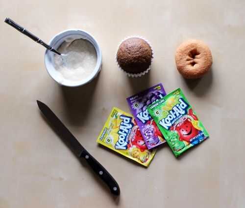 • púrpura, verde y amarillo de lijado azúcar o Kool-Aid