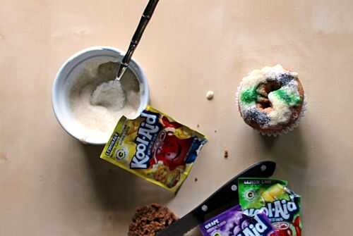 * Una palabra de ADVERTENCIA - Si utilizas Kool-Aid, se obtiene un letalmente uva-limón-sabor a limón que es algo parecido a arrojar de vuelta una caja llena de Sour Patch Kids todos a la vez. Si esto suena desagradable para usted, yo optaría por el azúcar lijado. : D