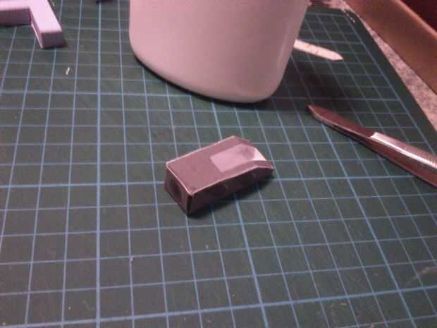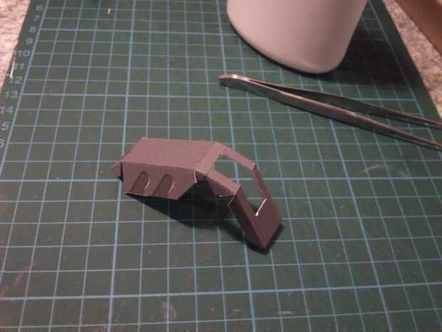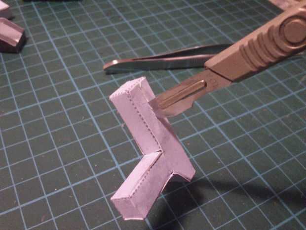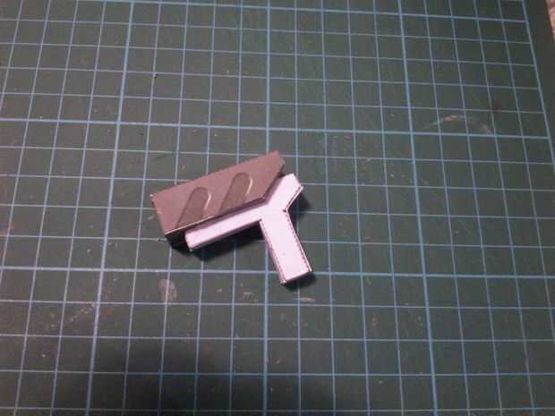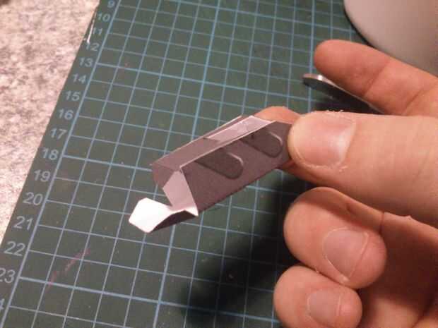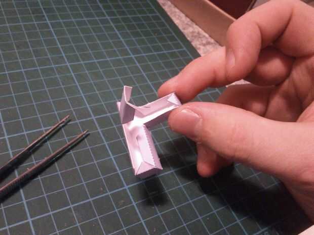 Cuando el cuerpo de la pistola está seco, cortar cuidadosamente a lo largo de la línea verde. Esto es para recibir la parte superior de la pistola.
