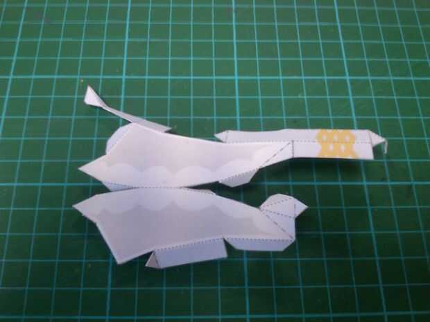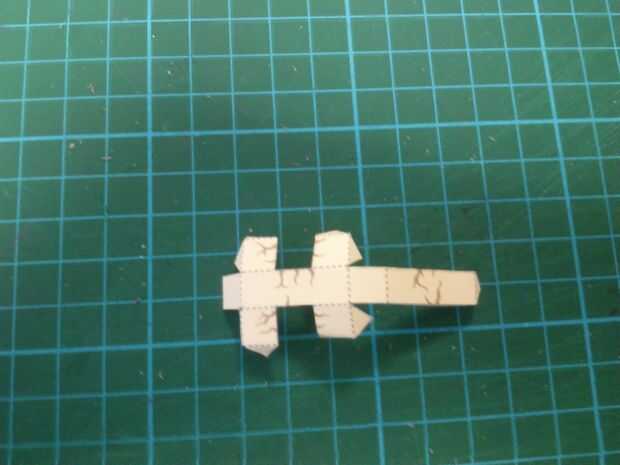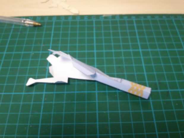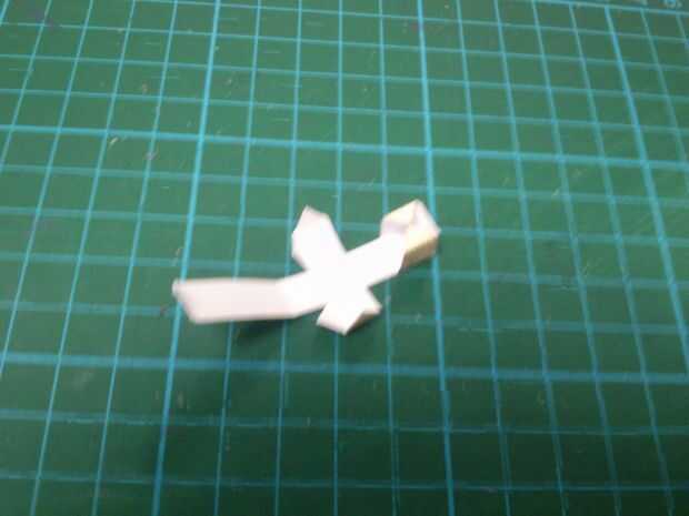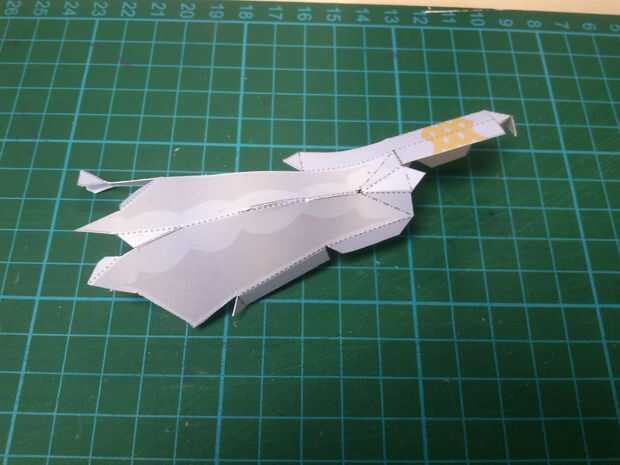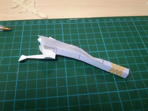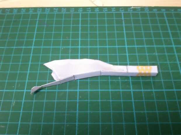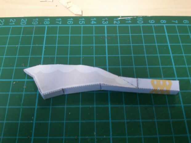 Cuando eso se hace, hasta la parte posterior de la hoja metiendo y pegar las aletas en. Acabado en la parte superior.