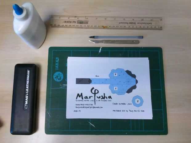 Kit Marfusha pre impreso o descargado e impreso en cartulina A4 (210 gsm es preferido). Cuando la impresión, asegúrese de que la escala se establece en 100% de lo contrario saldrá demasiado pequeño.