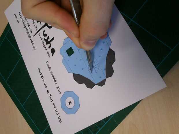 Cuchillo o bisturí - por favor tenga cuidado y conseguir la ayuda de un adulto. Es posible cortar los contornos hacia fuera con unas tijeras pero hay algunas partes internas que necesita la precisión de un cuchillo para poder llegar.