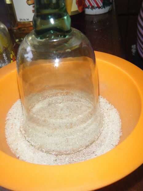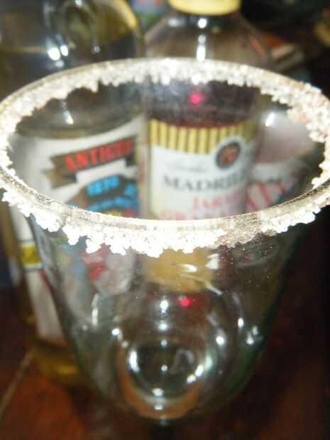4.- Frote el borde de una copa con la granadina y luego sumerja en la mezcla de azúcar Tamarindo a las heladas.