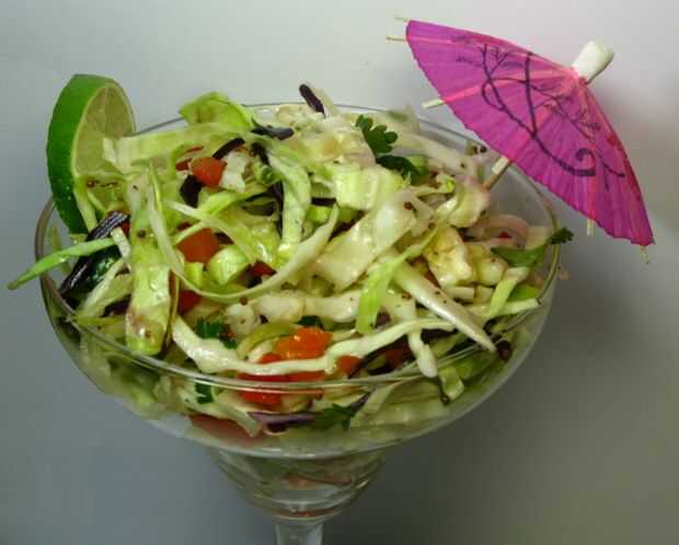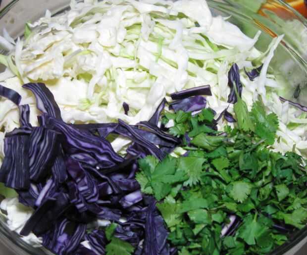 ingredientes:"Dry"5-1/3 m3 de repollo rallado1 cebolla Med., finamente picado1 zanahoria de LG., rallado1/2 pies cúbicos picados pimientos, sembrada1/2 pies cúbicos pimiento rojo, cabeza de serie1 cucharadita de sal"Mojado"1 azúcar pie