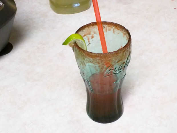 Vierta en la guarnición de cristal preparadas con una cuña de la cal, paja y una pizca de sal mezclar, sentarse, relajarse y disfrutar.