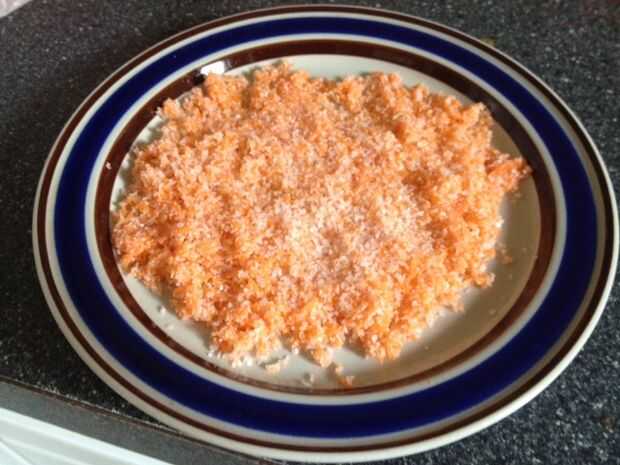 Alrededor de 1/4 taza de la fibra de la zanahoria y añadir a 1/4 de taza de sal kosher. Mezcla bien y deja sentado mientras el jugo es escalofriante.