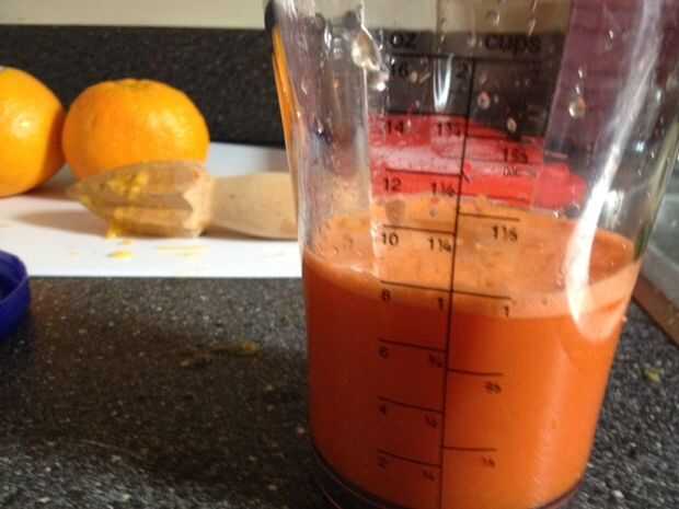 Empezar por el jugo de las zanahorias. 1 libra de zanahorias crudas le dará aproximadamente 6 onzas de jugo de zanahoria. Una vez que jugo, enfriar durante una hora o así.