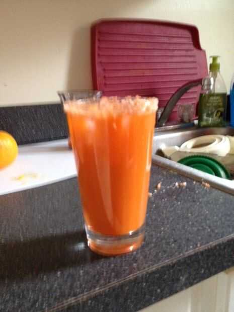 Sí sé que es un poco inusual, pero el zumo de zanahoria es lo suficientemente fuerte para dominar esa aspereza de tequila y equilibrado la naranja el sabor de otros ingredientes de ambos