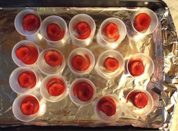 • Llenar las fresas lo más posibles porque la gelatina reduce un poco cuando se convierte en firme. Estar preparado puede ser un paso desordenado.