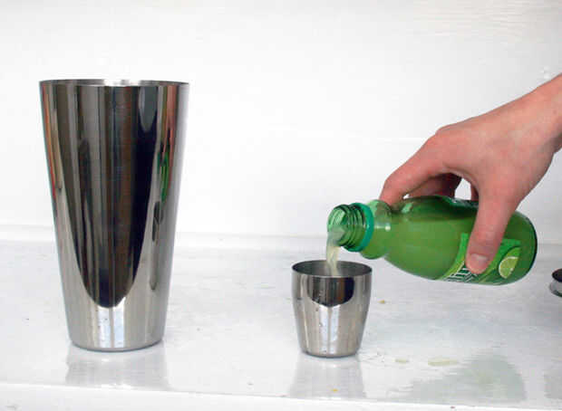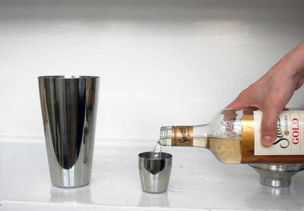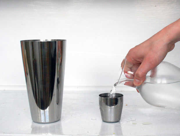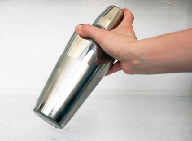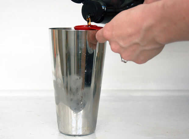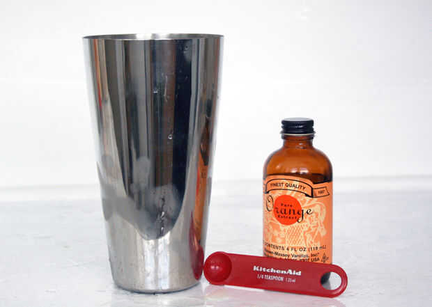 usé una coctelera para hacer esto, puesto que vino con su propia tapa de medición conveniente. Sin embargo, va a hacer cualquier tipo de vaso o jarra (si desea ampliar las mediciones).