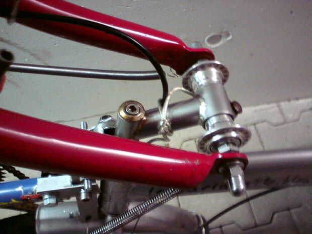 La nueva bisagra está construida con un eje de rueda, un vástago del manillar y una horquilla.