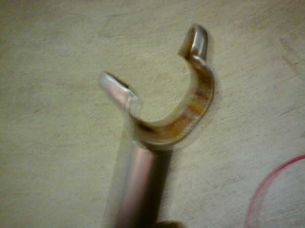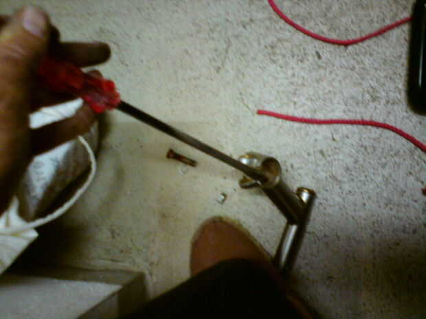 La abrazadera del vástago se inauguró con un gran destornillador y alicates.