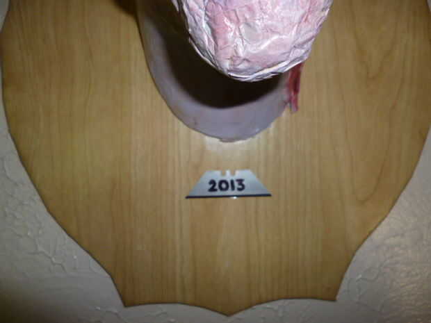 • Como toque final que no escribe el año fatal que le quitaron la vida desde su matrimonio en una cuchilla de corte de caja (preferiblemente uno usado en el ataque) y fíjelo a la parte delantera de la unidad.