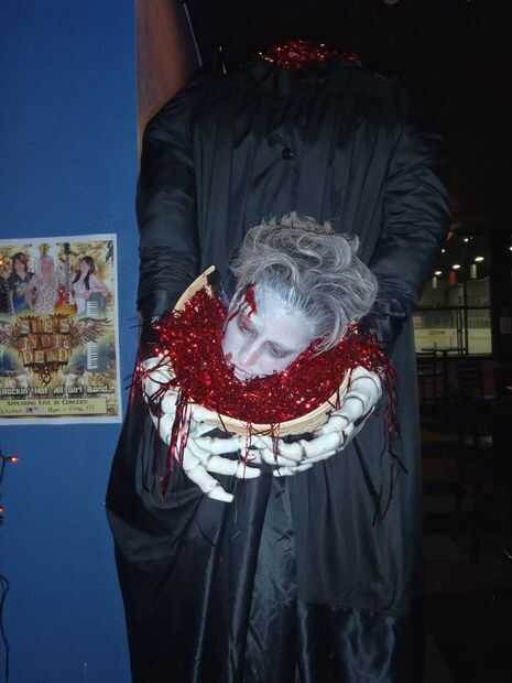 Hizo el pelo y el maquillaje clásico delirio vieja escuela laca para el cabello de max hold-blanco pintura, con sombreado gris y negro, además de sangre.