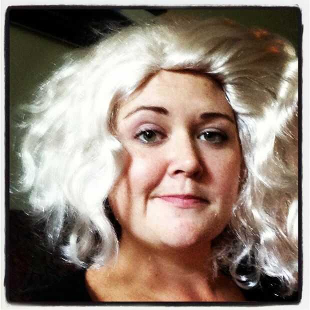 1 peluca rubia (resaltado con pintura amarilla y negra para efecto)