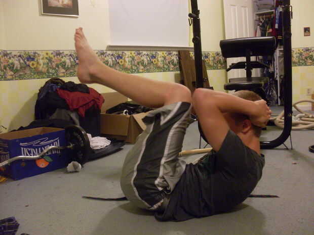 Ahora para este ejercicio combina la contracción normal con el ejercicio de la mecedora para sillas mecedoras de Crunch. Recuerde que debe mantener las piernas en un ángulo de 90 grados a través de todo el movimiento