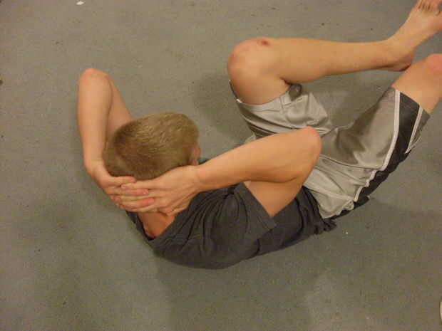 Ahora estás en el último ejercicio! Para Preforma de la contracción de bicicleta, consigue en la posición normal de la crisis y el tirón de su codo izquierdo a la rodilla derecha, después la derecha codo a su rodilla izquierda. se trata de una repetición. Ahora has completado (con suerte) los Navy Seals ab trabajar!