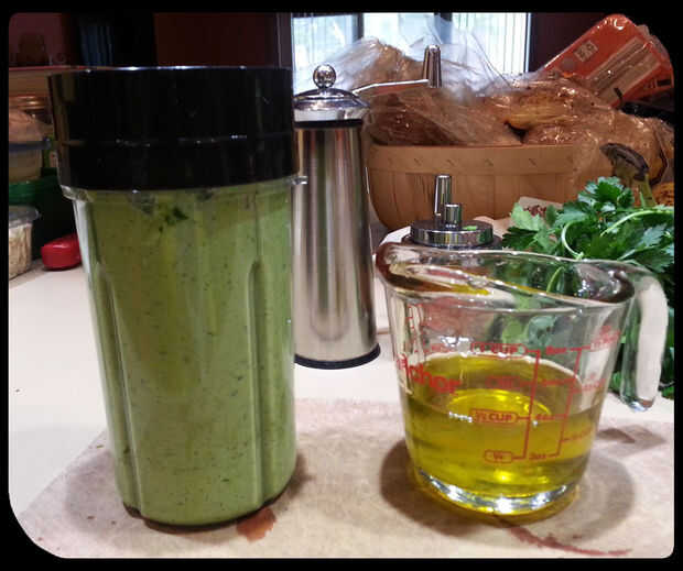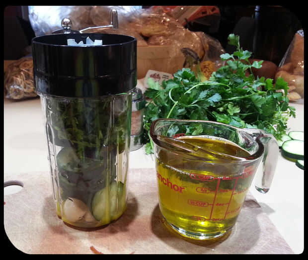 Coloque el ajo, pepino, sal, pimienta, perejil, huevo, salsa de Worcestershire (si se desea) y jalapeños en la licuadora. Mezclar hasta que el licuado. Añadir lentamente el aceite de oliva (alrededor de 1/4 taza a la vez debe ser bien) hasta que ligue la mezcla.