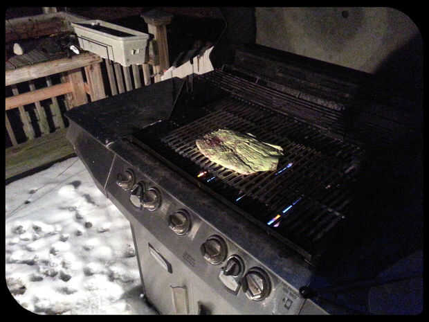 Viviendo a través de la tormenta de hielo de 3-7 días algunos apagones y estar en un apartamento para algunos de ellos, pensé en una manera de cenar un buen filete. Todos aunque esto debe ser preformado fuera, con todas las precauciones que toma se p
