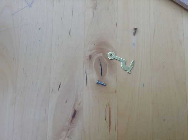 Haz tu gancho, tornillo de 25 mm x 10 mm y otro tornillo ahí que no es demasiado pequeño pero también no demasiado grande y marcar donde está conectando con el mismo método que antes. Atorníllelos en y, una vez más, comprobar que funciona. Si es así, que ha terminado.