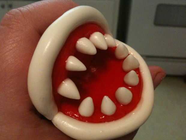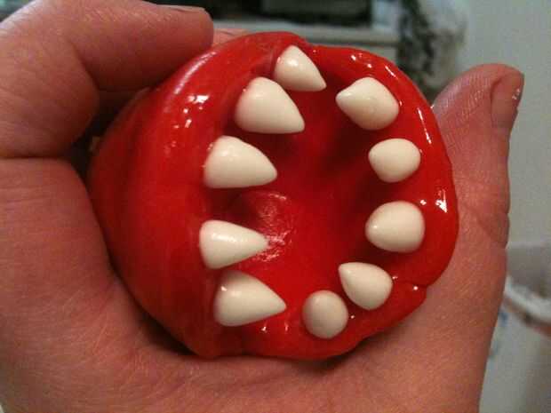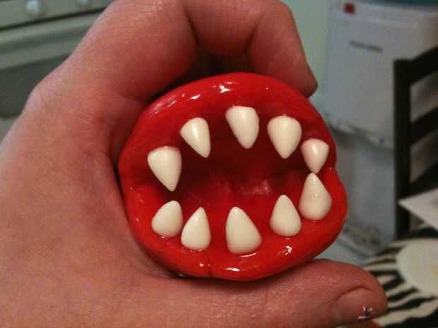 Coge un palillo de dientes o algo stick aplique algún gel de tuberías. Línea del borde exterior y entrar en la boca aproximadamente un cuarto de pulgada, para que usted esté preparado para los dientes y los labios para ser pegado en.