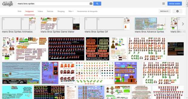 Cuando digo "Sprite" es la imagen o el dibujo extraído del juego, podría ser la figura de Mario Bros, una nube, un árbol o cualquier cosa de cualquier etapa del juego, para encontrarlos, simplemente Google Mario Bros sprites y usted obtendrá un montón de resultados incluyendo todos los "personajes" del juego en una hoja (Foto 2)