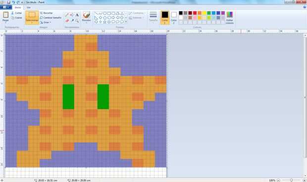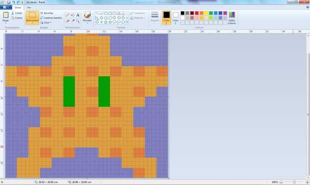 Para el uso de sprites del herramienta de selección: haga clic en herramienta de selección en el menú superior > seleccione selección rectangular > haga clic en la última opción "transparencia".Utilice la herramienta Selección para "enmarcar" el sprite que se desea (todo) como en la imagen, en este caso la estrella.Con la imagen seleccionada, haga clic en copiar en el menú superior o ctrl + C.Abrir un archivo nuevo de la pintura como en el paso 1.Compruebe si la lona es en píxeles como en el paso 5.Ajustar lienzo a las medidas (ancho y alto) que necesita para el sprite. Recuerde, estamos haciendo este proceso más tarde imprimir las imágenes en las etiquetas. Vamos a decir que necesitamos imprimir la estrella en una 20 cm x 20 cm, para ello, repita el paso 6 pero en el segundo menú de diálogo, cambios de pixeles a centímetros... ves 2 pequeñas cajas con números, allí te tienes que poner los tamaños de anchura y altura que necesita (20 x 20).Una vez que tengas el lienzo con 20 x 20 cm, haga clic en pegar en el menú superior de la izquierda o Ctrl + V. Después de pegar el sprite, verá que es muy pequeño, preocupación de don´t vamos a ajustar a 20 x 20 cm en un minuto. Busque la regla en la parte superior derecha del lienzo, todo está en 20, lo que significa que has hecho correctamente :) Nota: Si no se pega nada a vino hacia el primer archivo, marco el sprite otra vez y copiar y pegar en el archivo 2.Tenga en cuenta que cada vez que pega el sprite, esta se pega en la esquina superior izquierda de forma predeterminada con un marco y pequeños cuadrados blancos alrededor (zoom para mostrar mejor). Bien, necesitamos hacer clic este pequeños cuadrados para agrandar la imagen hasta 20 cm o para mejor decir, a la lona todo que miden 20 x 20 cms.Para ajustar el sprite, ponga el ratón en la esquina inferior derecha (verás una flecha de doble una vez que usted seleccione), arrastre el sprite hasta la frontera de 20 cm. no anule la selección o haga clic en nada, necesita volver a hacerlo.Para completar el ajuste de sprite, desplácese hacia abajo de la derecha bar para ver los desaparecidos parte, seleccione la plaza central y arrastrar hacia arriba hasta el final de la tela. Después de ajustar el sprite puede se dio cuenta que es muy grande, no preocuparse pondrá este sprite en una pared de huugeee.Finalmente usted tendrá algo parecido a la imagen.