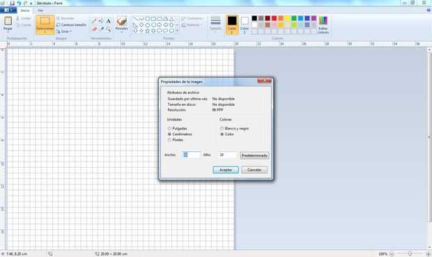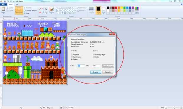 - Se abrirá un nuevo cuadro de diálogo con las propiedades de la imagen, haga clic en píxeles si no está seleccionada. Nota: deje los cuadros inferiores con anchura y altura como valor predeterminado los valores utilizará más adelante.