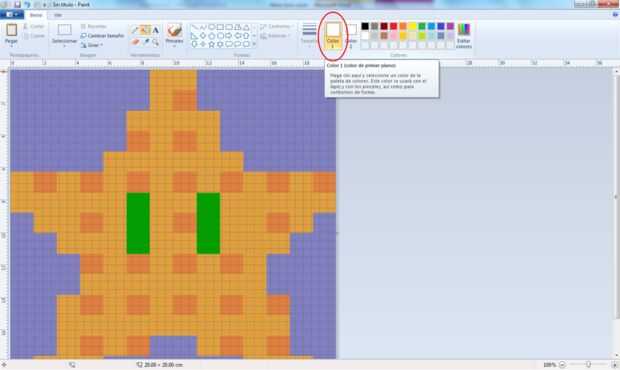 4. Pintar el fondo con blanco haciendo clic en las piezas que se desea a color, en este ejemplo los púrpuras.