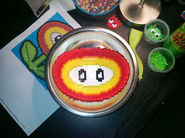 quería un mario bros cruzado cosido pero no sé cómo hacer punto de Cruz así que espero que tengo un amigo que sabe y a cambio le hice una lámpara daisy.Eso es lo que me gusta hacer cosas para otras personas a cambio de otras cosas!Así que, básicament