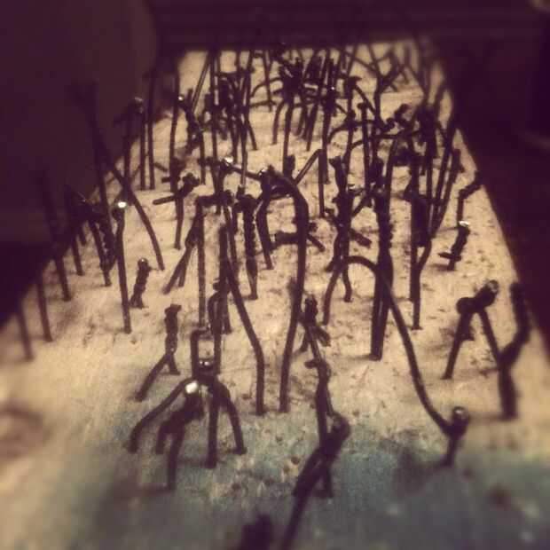 Con la pieza de madera taladré y todos los pedacitos de alambre corto, ponerlos en los agujeros y
