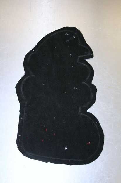 • Pieza posterior en negro del patrón grande, sin corte. Esta es la parte de atrás de la media. Dejan un poco de margen de costura alrededor del borde de la misma forma usted puede recorte lo todo muy bien más adelante.