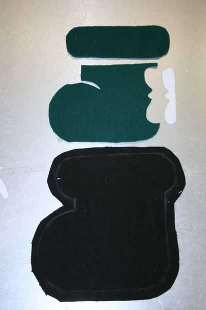 • Todo zapato de fieltro negro (para pegar las piezas verdes en). También dejar un margen alrededor del lado de esta pieza