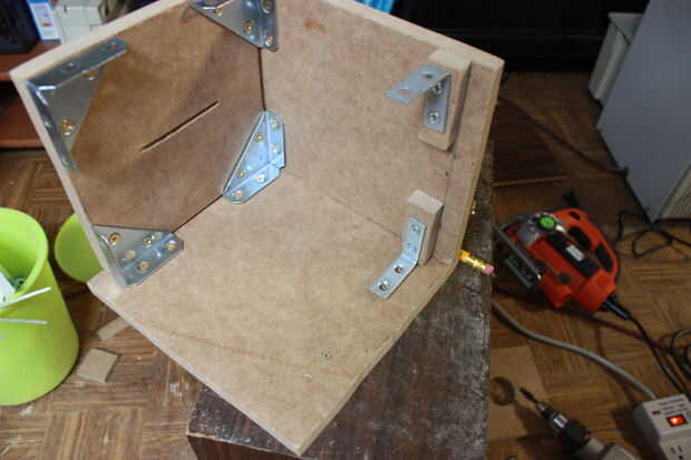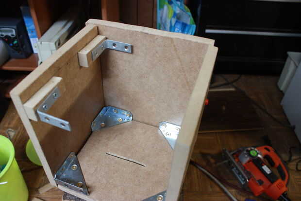 Después de agregar la esquina y los apoyos de L y los bloques y placas de montaje, debe tener 5 lados de la caja terminada.