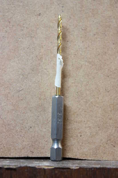 Desmonte el tablero lateral de 6 x 7 1. Busque el área no perforada y mida 1/2" a lo largo del borde. Trace una línea para la dirección. Coloque el bloque en el lado de 3/4. Los agujeros con el margen más pequeño deben quedar hacia el borde. El bloque se alinean con la línea dejando un espacio de 1/2" y fijarlo con la abrazadera hacia abajo. Ahora usando la cinta de 3/32 broca, taladre a través del bloque hasta llegar a la cinta para no perforar el bloque y la Junta.