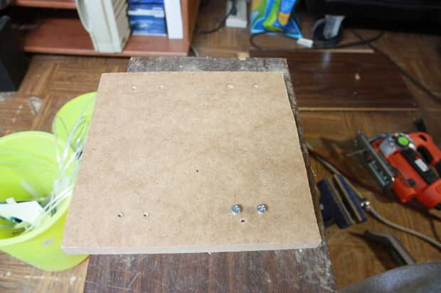 Una vez que tengas ambos 6 x 7 completamente terminado, puede ya sea perforar completa la llave L o tomar el cada lado de 6 x 7 apagado uno por uno y luego perfore los agujeros. Después de que los agujeros han sido creados, inserte los tornillos de 1/2 pulgada para montar el tablero de 7 x 7 a ambos los soportes L.