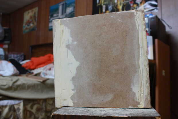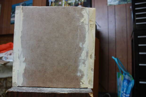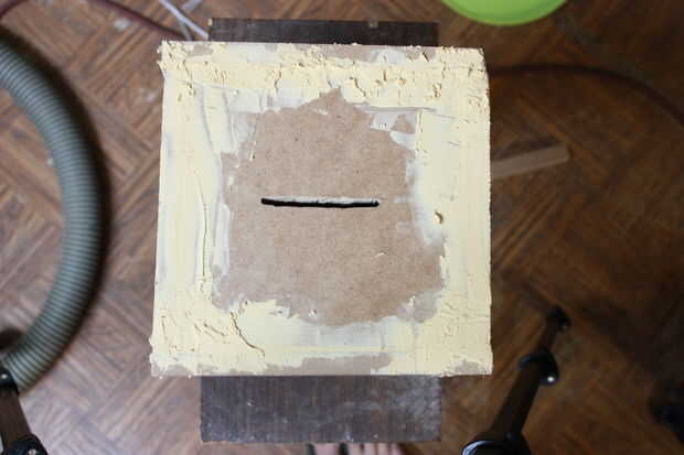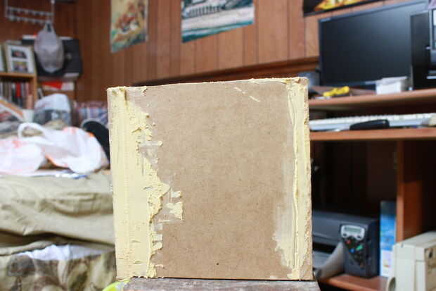 Tomar un cuchillo y uso madera relleno de Elmer y llenar todos los vacíos. Mis placas que corte no corte recto perfecto y usted podrá ver algunos bordes irregulares en las fotos. El relleno de madera puede arreglar ese asunto así.