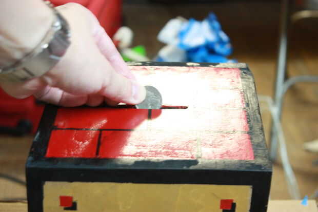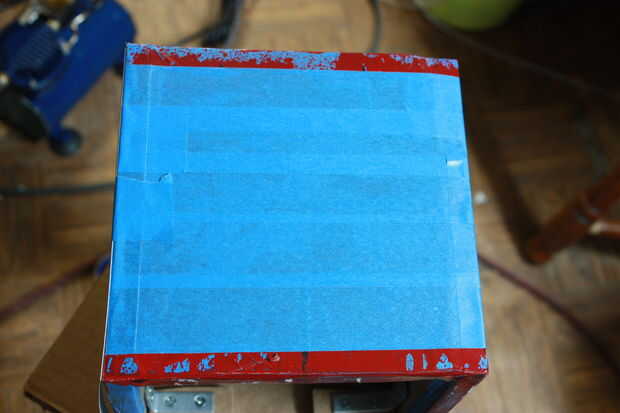 Deje que la pintura seque durante unos minutos y luego lentamente retire toda la cinta. Nota: La pintura del aerógrafo es de acrílico y cuando se seca puede dejar una hoja muy fina y delicada de la pintura en la caja. Si has aplicado demasiada presión aplicando la cinta, usted puede desprenderse de la pintura. Esto me pasó y tuve que volver a pintar el detalle o retocar algunas zonas donde sólo una parte de la pintura ha sido pelada.