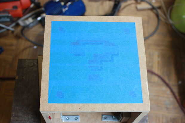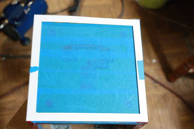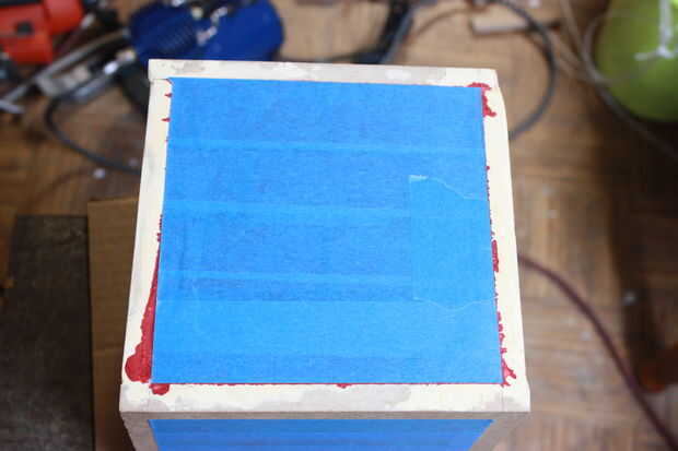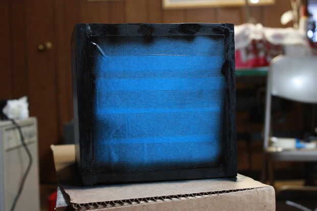 Coge la cinta de pintor de su ambiente y a partir de 1/2 pulgada del borde ya que ya lo tienes pegado. Utilizar varias bandas hasta llegar a la parte inferior. Deje una separación de 1/2 pulgada ya que se grabó ya antes. Hacerlo para todos los 5 lados.