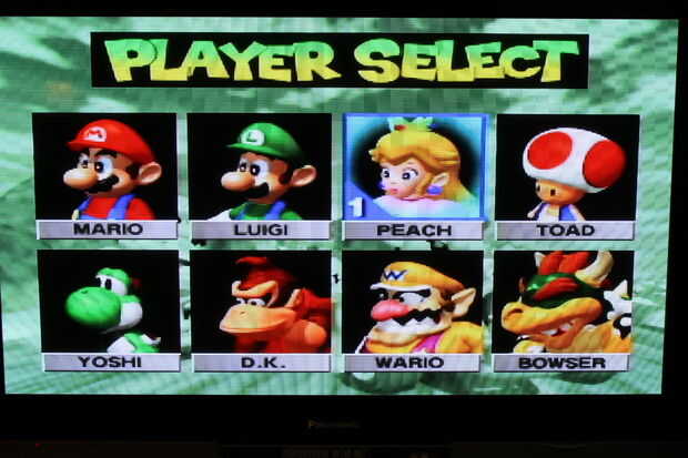 Seleccionar un carácter, sólo recomiendo usar melocotón en ensayos de tiempo ya que es el personaje más rápido, seguido por Toad y Yoshi para los pesos ligeros, luego Mario y Luigi como los medios y el resto como los pesos pesados.