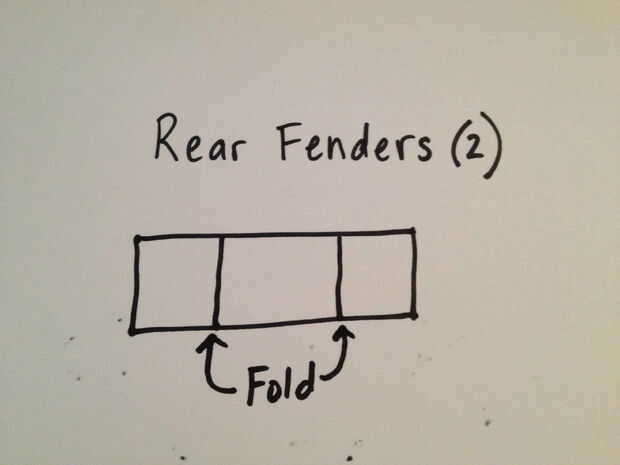 Utilizar las plantillas general proporcionadas aquí y tamaño de las piezas para adaptarse a su vehículo en el paseo. Empezar con la campana, determinará el tamaño del parachoques por lo que tiene que ir primero. Debe permitir suficiente espacio para que las piernas del jinete caber por debajo, así que empieza la campana justo debajo de su volante. Pendiente hacia abajo lo suficiente para crear un bolsillo lo suficientemente grande para acomodar una gama completa de movimiento de pedaleo de las piernas. A continuación, el tamaño del tope para que la pieza superior del centro es ligeramente más grande que la parte delantera de la campana (para que se ajuste alrededor de la campana). El guardabarros trasero se pueden ajustar para adaptarse a su vehículo en el paseo, no afectan el tamaño de las piezas que por estética.