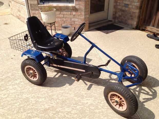 Los chicos querían una forma de llevar su truco o trato bolsas y las probabilidades y termina, linternas, teléfonos, etc.. Para lograr esto he añadido una cesta de alambre simple marco en la parte trasera del Kart. Os adjunto dos 2 x 2 carriles de madera a la estructura del viaje en vehículo por atornillar una placa de unión entre las dos piezas de madera colocando la estructura metálica. Luego até el otro extremo a la cesta por atornillar una placa de zurcido en la madera colocando el marco de alambre. Fue rápida y fácil. Los muchachos fueron sembrados para la noche y fueron capaces de ir e ir sin tener que volcar su booty y recargar en casa. Después de esta foto fue tomada también agregó una bandera de la seguridad de bicicleta y dos pilas grifo luces aseguradas que el parachoques delantero. Parecían linternas en los Karts. Entre la bandera y los reflectores del paseo en vehículo en la parte trasera y los faros delanteros era fácil verlas ir y venir en la oscuridad (nuestro vecindario está bien iluminado pero ser prudente nunca duele).