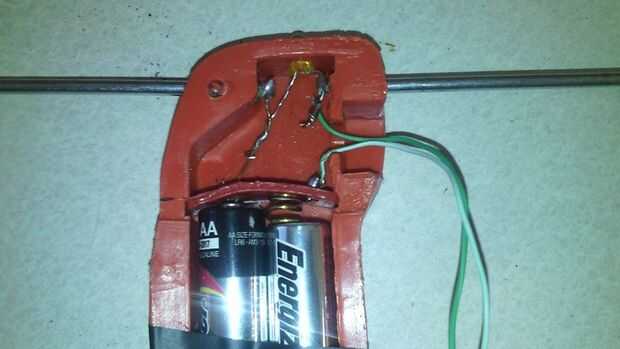 Abrir la herramienta de corte de espuma de poliestireno y corte el pulsador y la soldadura de dos alambres uno donde se coloca el LED y el otro donde se coloca la batería. El mago más abajo muestra cómo debe.