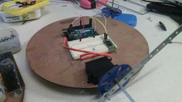 Conecte los servos, un cable con tensión el otro a tierra. El cable de control está conectado directamente a la Arduino que se colocará en la parte superior.