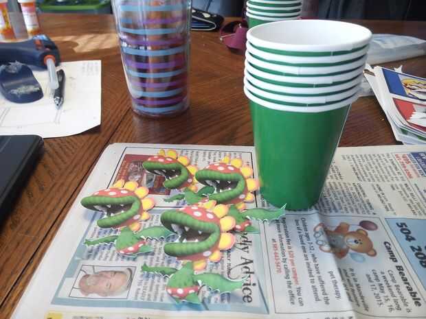 pequeñas cosas para lanzar en las tazas (utilizamos granos de la espuma y pompones del árbol del dólar)