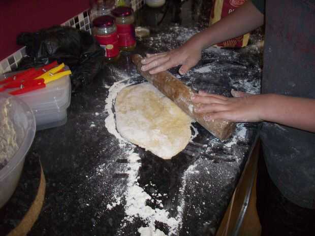 Antes de hacer cualquier balanceo, cubren su área de trabajo, la masa y amasar harina.